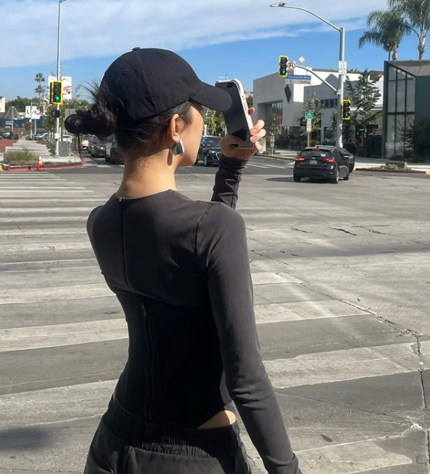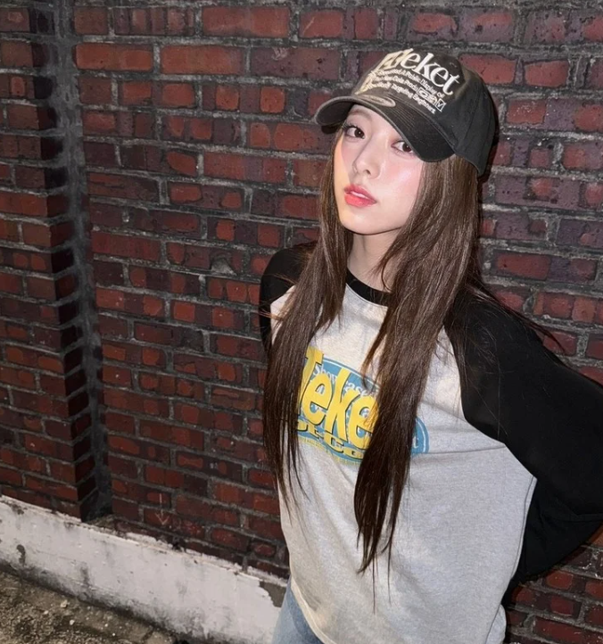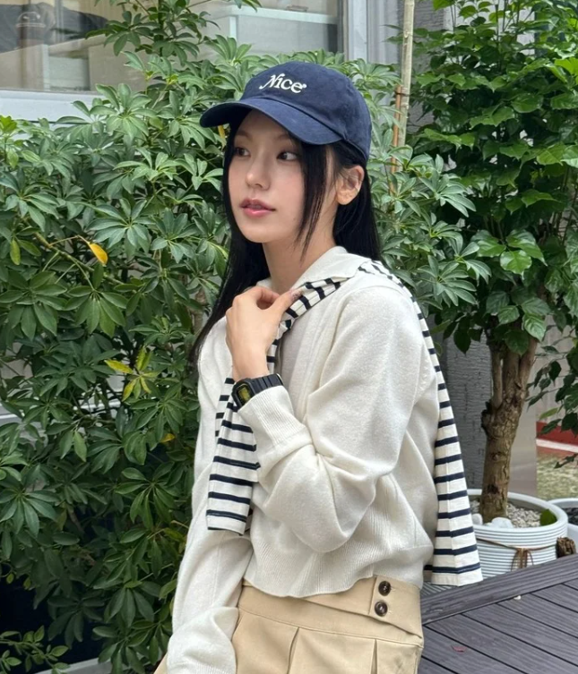 긴 생머리와 볼캡 조합은 청순미와 세련미를 동시에 보여주는 정석적인 스타일입니다. 머리카락을 귀 뒤로 넘기지 않고 자연스럽게 흘러내리게 하면 얼굴이 작아 보이는 효과까지 얻을 수 있습니다.